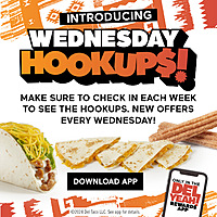Found by CookinFer2 Del Taco Restaurant Wednesday Hookups! App Offers$1 Grilled Chicken Taco