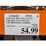 COSTCO (In Store) Instant Pot Nova Plus 6 Quart 9-In-1 Multi-Use Pressure Cooker $54.99 seen at Costco Montclair CA, YMMV.