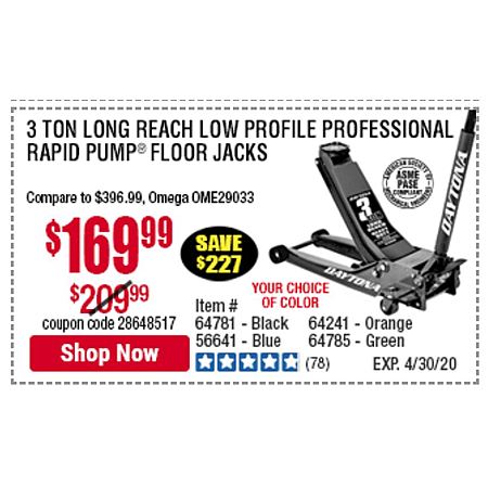 DAYTONA 3 Ton Long Reach Low Profile Professional Rapid Pump® Floor Jack - Black $169.99