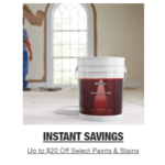 Offer valid 8/28-9/9/2020 at participating stores and online. Get $5 off gallon cans and $20 off three and five-gallon buckets with the purchase of select Interior and Exterior Paints and Stains. Limit 25 Gallons Per Household. Valid products include: BEHR MARQUEE®, BEHR Ultra®, BEHR Premium Plus®, PPG Timeless®, PPG Diamond, Glidden Premium Interior and Exterior paints, BEHR® Stains and Waterproofers, BEHR Premium Stains and Waterproofers, BEHR DeckPlus Stains and Waterproofers, BEHR DeckOver®, Olympic® Maximum and Elite Stains, Flood Stains, and Preserva Wood Stain and Sealer. Promotions are instant savings at register in U.S., Hawaii and Alaska. The Home Depot® stores. Promotions not valid on any America's Finest®, BEHR Pro i100™, BEHR Pro i300™, BEHR Pro e600™, BEHR Pro e500™, PPG® Ultra-Hide, Glidden Professional® Speed-Wall®, Glidden Professional Ultra-Hide 220, Glidden Professional Ultra-Hide 440, BEHR Quick Dry®, PPG Specialty Finishes*, Glidden® HydroResist**, BEHR Concrete, Porch and Floor Paint, BEHR Granite Grip™, Rust-Oleum® Rocksolid® garage kits Glidden Porch and Floor, Glidden Professional Ultra-Hide 770, Glidden HydroSteel**, Glidden Speed-Cote®, Glidden Ceiling Paint, Glidden Essentials Paint, PVA primer, Zinsser® Primers, Gripper® Primer, Glidden Stucco & Masonry, KILZ® Primers, KILZ® PRO-X Paint nor Primers, Oops paint or all other products not listed above. No returns on paint. Promotion is not valid with any other offers including Pro Xtra Paint Rewards discounts. ©2020 Home Depot Product Authority, LLC. All rights reserved.