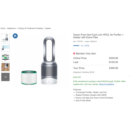 ★★★★★★★★★★4.4 out of 5 stars. Read reviews for Dyson Pure Hot+Cool Link HP02, Air Purifier + Heater with Extra Filter