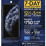 The 7-day Wireless Event starts on November 14th online at 12am ET and in store at 5am local time and is valid through November 20th, unless otherwise noted. See ad or store for more details.