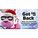 Purchase at any retailer except Lowe's, at least $15 (before tax & after coupon savings) worth of any Energizer® Brand battery and lighting products in a single transaction.Then, take photo of (or scan) your entire original receipt & redeem at