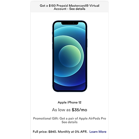 Visible Wireless: 64GB iPhone 12 + AirPods Pro Earbuds + $150 Prepaid Mastercard