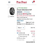 Came across this buy 2 get 2 free BF deal from pep boys. I believe the Cooper Adventurer is the same or similar tire as the Cooper Discover or Cooper AT3. 60mi warranty. I see the total coming up to $450.94 after installation (Installation is $116.96–which seems a little pricey compared to sams/costco/walmart). Is this a good deal for these tires?