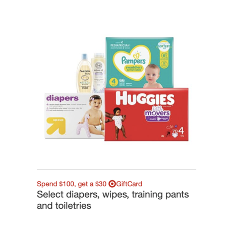 Target: Purchase $100 in Select Baby Diapers, Wipes & Toiletries, Get