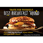 Note: the free egg sandwich with purchase reward will be loaded into your account at sign up and is one-time use only.