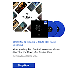 $49.99 for 12 months of TIDAL HiFi music streaming with purchase of Pop Smoke’s new vinyl album: Shoot for the Moon, Aim for the Stars. (A $269.87 value)