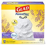 Glad ForceFlex Tall Kitchen Drawstring Trash Bags 13 Gallon White Trash Bag, Mediterranean Lavender scent with Febreze Freshness 80 Count