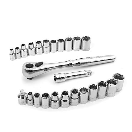 The performance you need comes conveniently packed in this Craftsman 25-piece socket wrench set. Featuring 3/8" and 1/4" drives for SAE and metric applications, this tool set speeds up any task while holding up to hard work with all-steel construction. A portable plastic case protects and organizes your wrench and sockets.