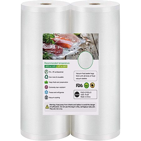 Amazon[amazon.com] has 2 Pack 8" x 25' Heavy Duty Vacuum Sealer Bags for Food Saver for $11.99 after applying coupon code "50LD8OST" at checkout.Shipping is free with Prime or on orders over $25.