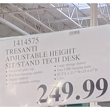 Tresanti 47" Adjustable Height Desk - Costco B&M $249.99