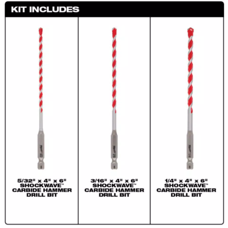 3 piece Milwaukee SHOCKWAVE Carbide Hammer Drill Bit Kit for Concrete, Stone, Masonry Drilling, $7.83, free shipping, Home Depot