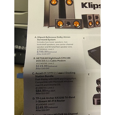 Great price on a docsis 3.1 router though. Saw about a zillion of them in my warehouse last night so hopefully they'll have the same sale price in the stores too.