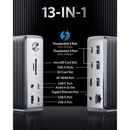 Anker Docking Station, PowerExpand Elite 13-in-1 Thunderbolt 3 Dock for USB-C Laptops, 85W Charging for Laptop, 18W Charging for Phone, 4K HDMI, 1Gbps Ethernet, Audio, USB-A Gen 1, USB-C Gen 2, SD 4.0