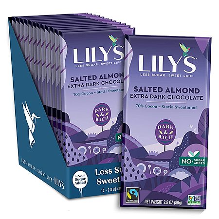 12-Pack 2.8oz Lily's Extra Dark Chocolate Bar (70% Cocoa)