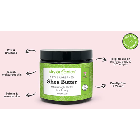 USDA Organic Shea Butter by Sky Organics (16 oz) 100% Pure Unrefined Raw African Shea Butter for Face and Body Butter for Dry Skin $10