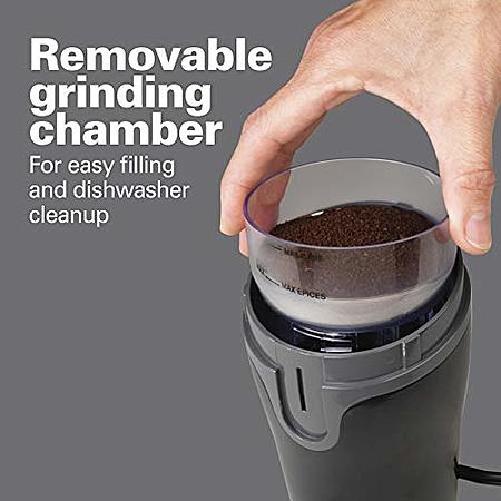 Model: Hamilton Beach Fresh Grind Electric Coffee Grinder for Beans, Spices and More, Stainless Steel Blades, Removable Chamber, Makes up to 12 Cups, Black