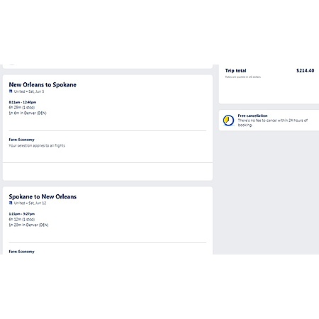 New Orleans to Spokane WA or Vice Versa $215 RT Airfares on United Airlines Main Cabin (Travel May - June 2021)