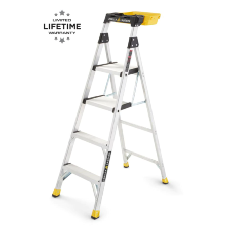 Gorilla Ladders 5.5 ft. Aluminum Dual Platform Heavy-Duty Ladder with Project Bucket(10 ft. Reach), 300 lb. Capacity Type IA Duty Rating-GLX-5B - $69.88
