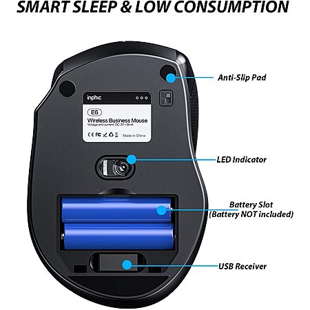 INPHIC Wireless Mouse for Laptop, 2.4Ghz Wireless Mouse with USB Receiver, 800/1200/1600 DPI Cordless Mice for PC Computer $5.79 - code : H9CY8OY5