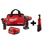 Milwaukee M12 FUEL 12-Volt Li-Ion Brushless Cordless Hammer Drill and Impact Driver Combo Kit (2-Tool)w/ M12 3/8 in. Ratchet-2598-22-2457-20 - $229