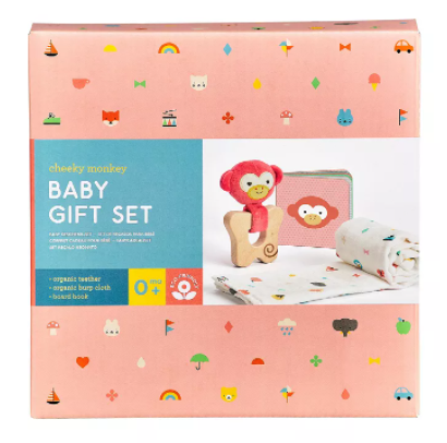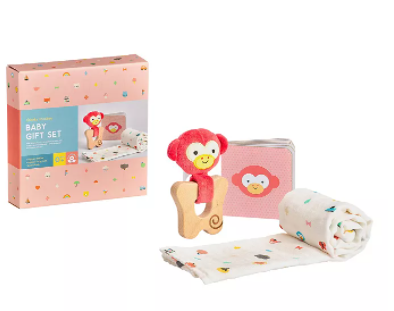 3-Pc.Wild & Wolf Teether, Burp Cloth & Board Book Baby Gift Set (Little Elephant or Monkey) on sale for $10 -