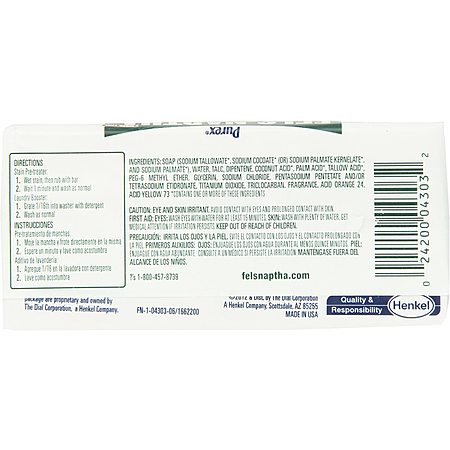 • Purex Fels-Naptha is a powerful laundry bar that works overtime to remove greasy, oily stains, perspiration, and ring-around-the-collar