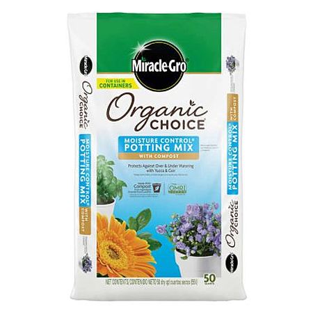 Want to grow bountiful container plants the organic way? Miracle-Gro Organic Choice Potting Mix with compost contains organic yucca and coir to help protect against over- and under-watering. Meanwhile, compost that's been crafted using ingredients diverted from landfills nourishes your plants. Plus, our potting mix is listed for OMRI® organic use, so you can feel good about what you grow.