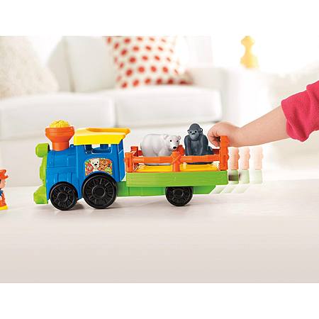 • A choo-choo at the zoo? Did you know it's musical, too? Press down on the train whistle to hear it blow, so the Train Conductor can signal the polar bear and gorilla to climb into the back. Then press down on the train bed to hear a sing-along song! Kids can roll the train along to hear fun animal sounds to help bring the play to life. So get on board with all the musical fun!