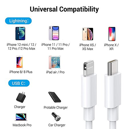 3-Pack 6FT Nikolable iPhone 12 Fast Charger Cable Type C to Lightning Cable (Supports Power Delivery) for iPhone $7.49 AC + FSSS