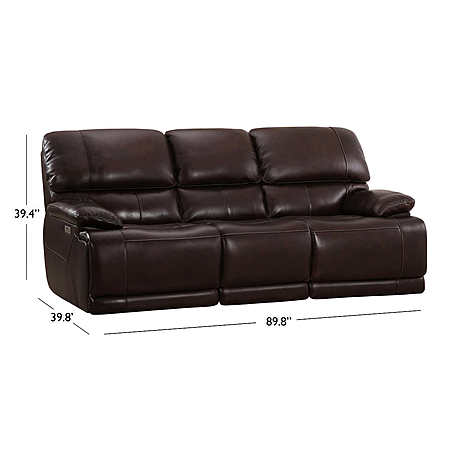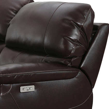Three important elements, comfort, quality, and design, have been combined to bring you this beautiful reclining leather sofa with adjustable footrest and headrest. This sofa features Leggett & Platt reclining mechanisms to adjust to your individual comfort needs. Your comfort and relaxation are intensified with a plush pillow-top seat that creates an initial softness with underlying support from pocket coil seat cushions. Separate zones of support adapt to your body with sinuous spring suspension. This sofa also features 2 USB ports.