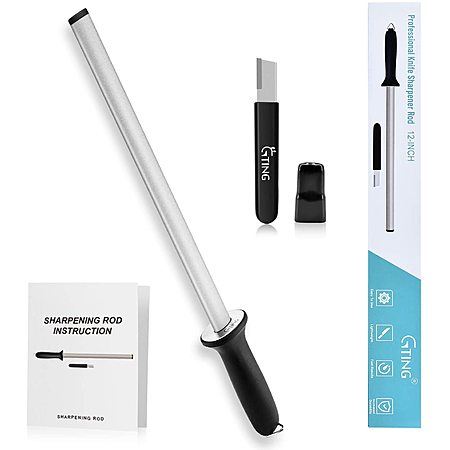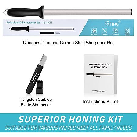 12 Inch Diamond Honing Steel, G-TING Professional Knife Sharpener Rod Kitchen Diamond Sharpening Rod Stick Tungsten Carbide Sharpener $11.49