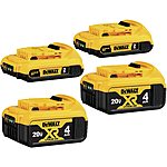 Dewalt 20V Max XR 4.0Ah Lithium-Ion Batteries (2-Pack) + 2.0Ah Batteries (2-Pack) FS $179