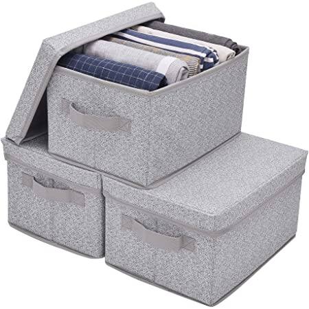 Storage Bins for Closet with Lids and Handles, Gray, Medium, 3-Pack, $16.09 + Free Shipping w/ Amazon Prime or Orders $25+