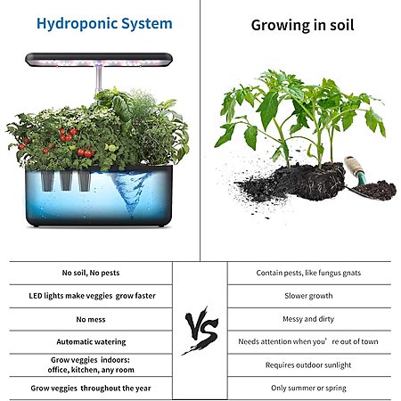 • High-Performance Grow Lights: The 24-Watt LED lights of the hydroponics growing system simulate the sunlight spectrum, promoting veggies photosynthesis in any weather