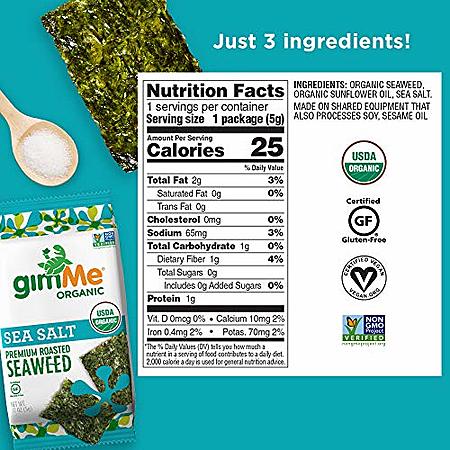 Model: gimMe Seaweed Sea Salt Snack - 3.52oz / 20ct