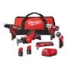 The kit includes the M12 Multi-Tool, M12 3/8 in. Drill/Driver, M12 Hex Impact Driver, M12 HACKZALL Reciprocating Saw, and M12 Work Light and two 1.5 Ah batteries.
