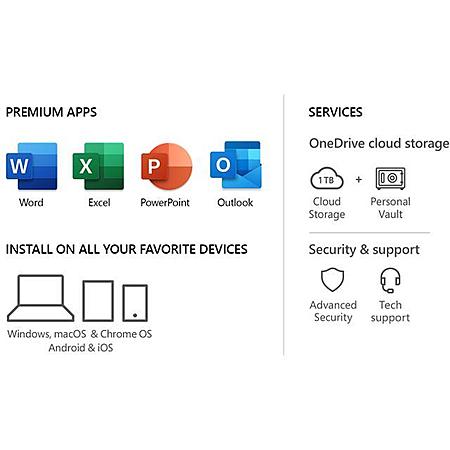 - Premium Office apps including Word, Excel, PowerPoint and Outlook