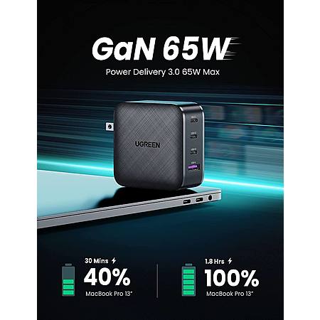 UGREEN GROUP LIMITED via Amazon has UGREEN 65W 4-Port (3x USB-C + 1x USB-A) GaN Wall Charger w/ Power Delivery (Black) for $39.99 - $14 w/ promotion code UGREENSD773 = $25.99. Shipping is free.