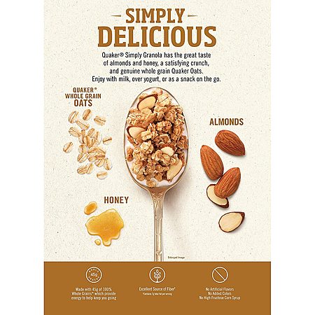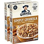 Amazon has 2-Pack 28-Oz Quaker Simply Granola Oats (Honey & Almonds) on sale for $6.13 when you 'clip' the 20% off coupon on the product page. Shipping is free with Prime or on orders of $25 or more.