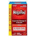 2 (Two) MegaRed 350mg Omega-3s Krill Oil Softgets 120 Count with EPA & DHA and Antioxidant $60.99