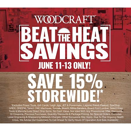Beat the Heat Sale - Take 15% Off Storewide @ Woodcraft June 11-13