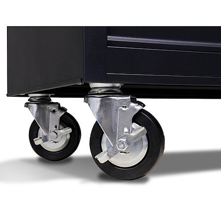 • 5 in. x 2in. heavy-duty casters ( 2-fixed, 2-swivel with toe locks) can support up to 1,200lbs