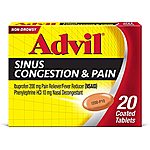 $6.28 for 20 Advil Sinus Congestion & Pain Relief Tablets at Amazon with S&S after 25% off Coupon