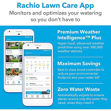 • Deliver all the water your plants need; no more, No less. Rachio creates tailored Smart schedules based on the specific needs of your lawn, including plant type, soil type, sun exposure, and more.