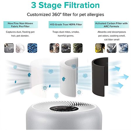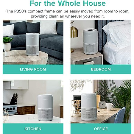 Model: LEVOIT Air Purifier for Home Large Bedroom, H13 True HEPA Filter, Air Cleaner for Pets Hair Dander Allergies Odors, 99.97% Removal of 0.3 Microns Dust Smoke Mold, Available for California, Core P350