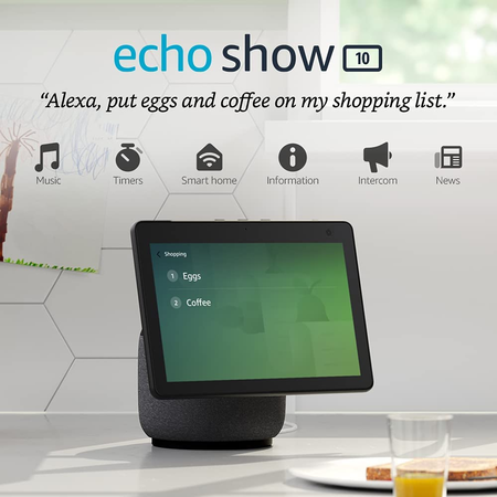 Model: Amazon Echo Show 10 HD Smart Display with Motion & Alexa Smart Speaker, Grey