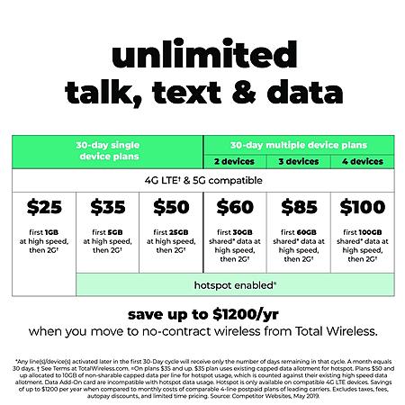 Total Wireless $35 Unlimited 30-Day Prepaid Plan: