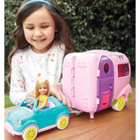 - Kids can go camping anytime with the Club Chelsea camper doll and playset that offers transformation and lots of toy pieces, including a puppy, to inspire imaginations